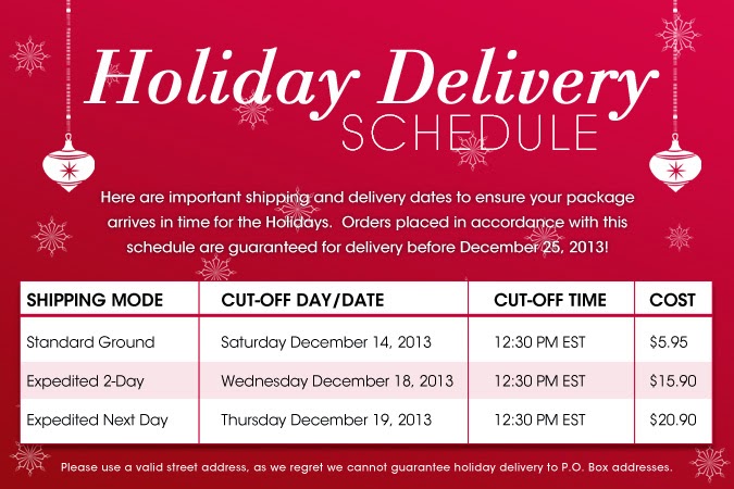 If you're wondering about Shipping by the Holidays, Here is the Shipping Cut of dates!